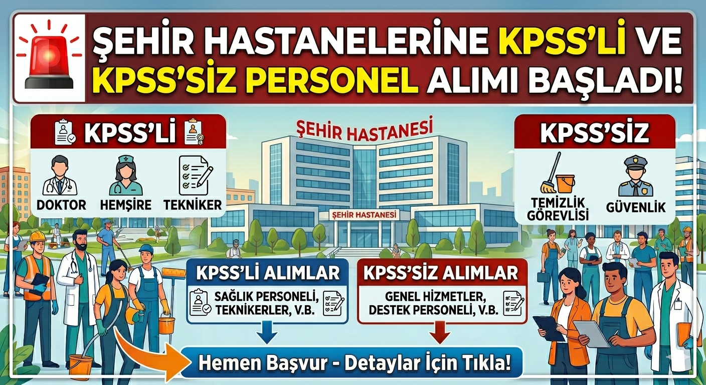 Şehir hastanelerinde çalışmak isteyenler için yeni fırsat kapısı açıldı. Türkiye genelinde birçok hastane için KPSS’li ve KPSS’siz personel alımı ilanları yayımlandı. Güvenlik görevlisi, temizlik personeli, büro çalışanı ve işçi kadrolarında alımlar başladı.